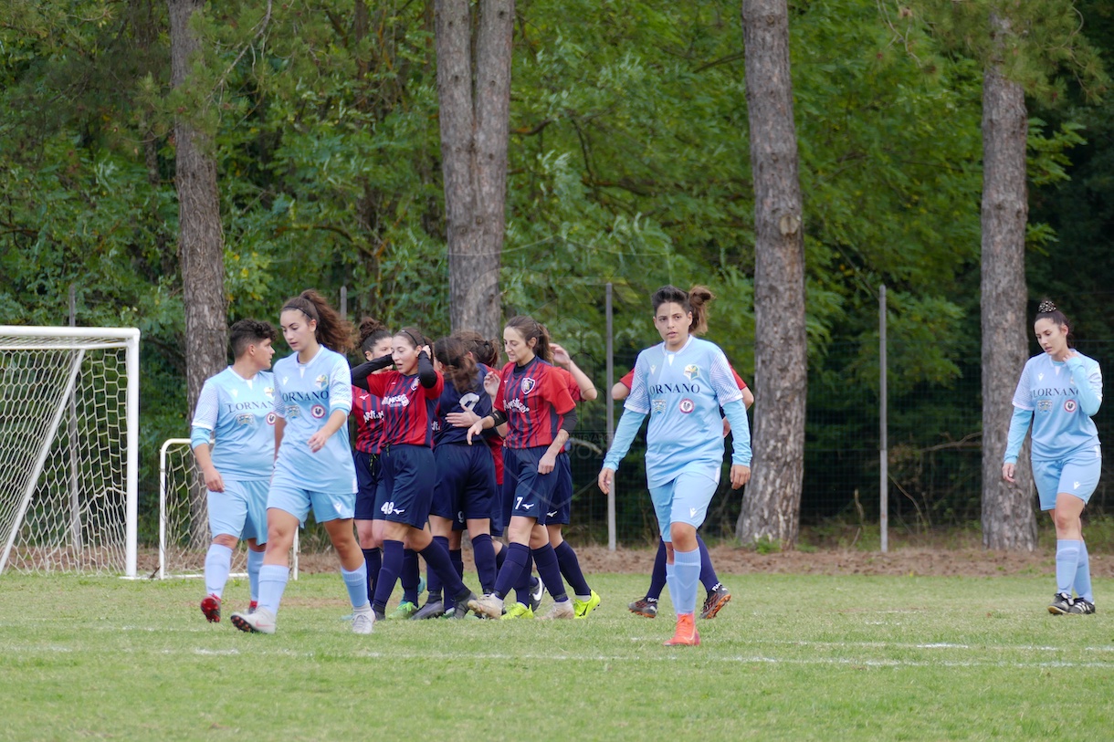 Finale un po’ convulso, tanti cambi e il sigillo al match del 4-1 siglato dalla neo entrata Martucci che, lanciata direttamente dalla difesa montevarchina, fugge in contropiede battendo in modo implacabile la numero uno ospite.